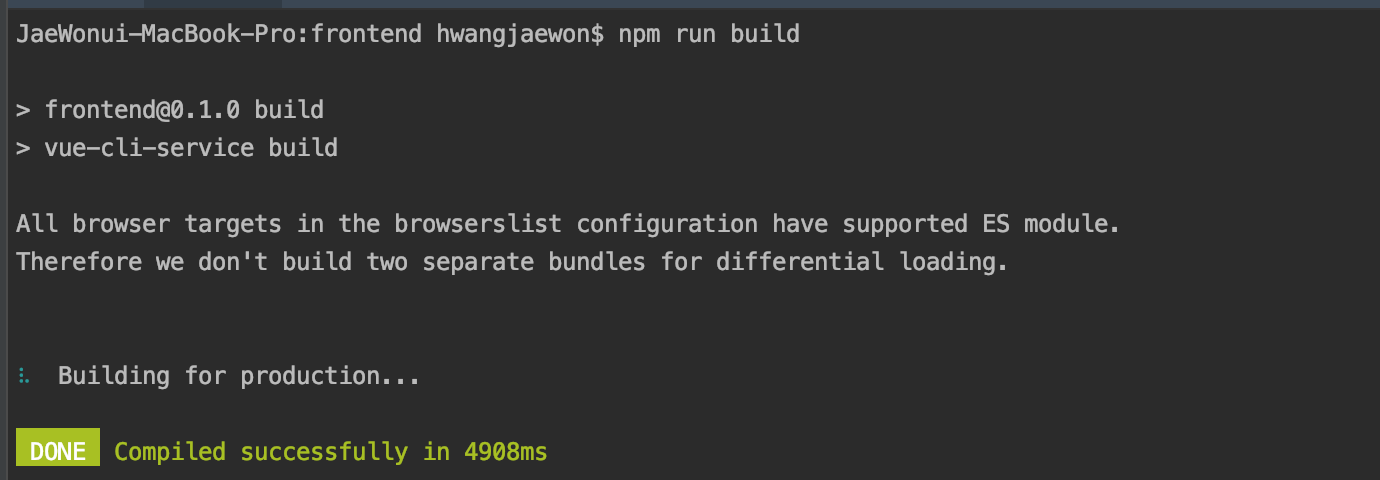 - 다음 명령어를 통해서 빌드를 진행합니다.