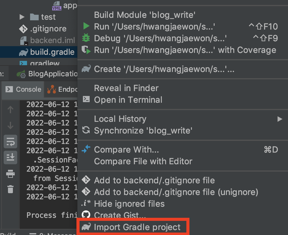 build.gradle 마우스 우클릭 -> Import Gradle Project 선택