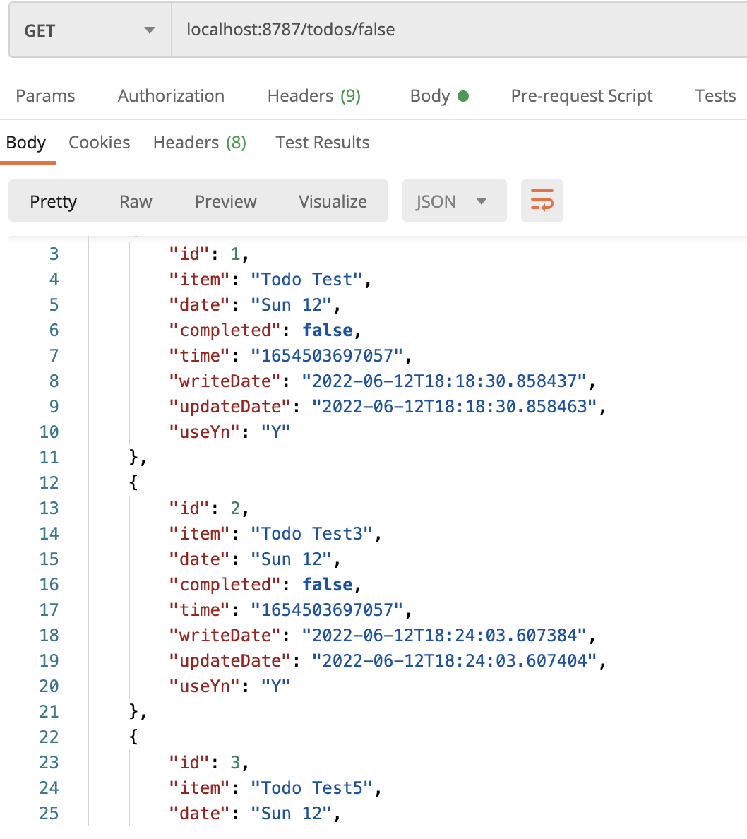 - 목록 조회(localhost:8787/todos/true or localhost:8787/todos/false)