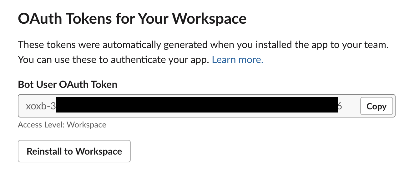 SLACK_SIGNING_SECRET The secret value shared only with the Slack Platform. It is used for verifying incoming requests from Slack. Request verification is crucial for security as Slack apps have internet-facing endpoints. To know the value, visit the Slack