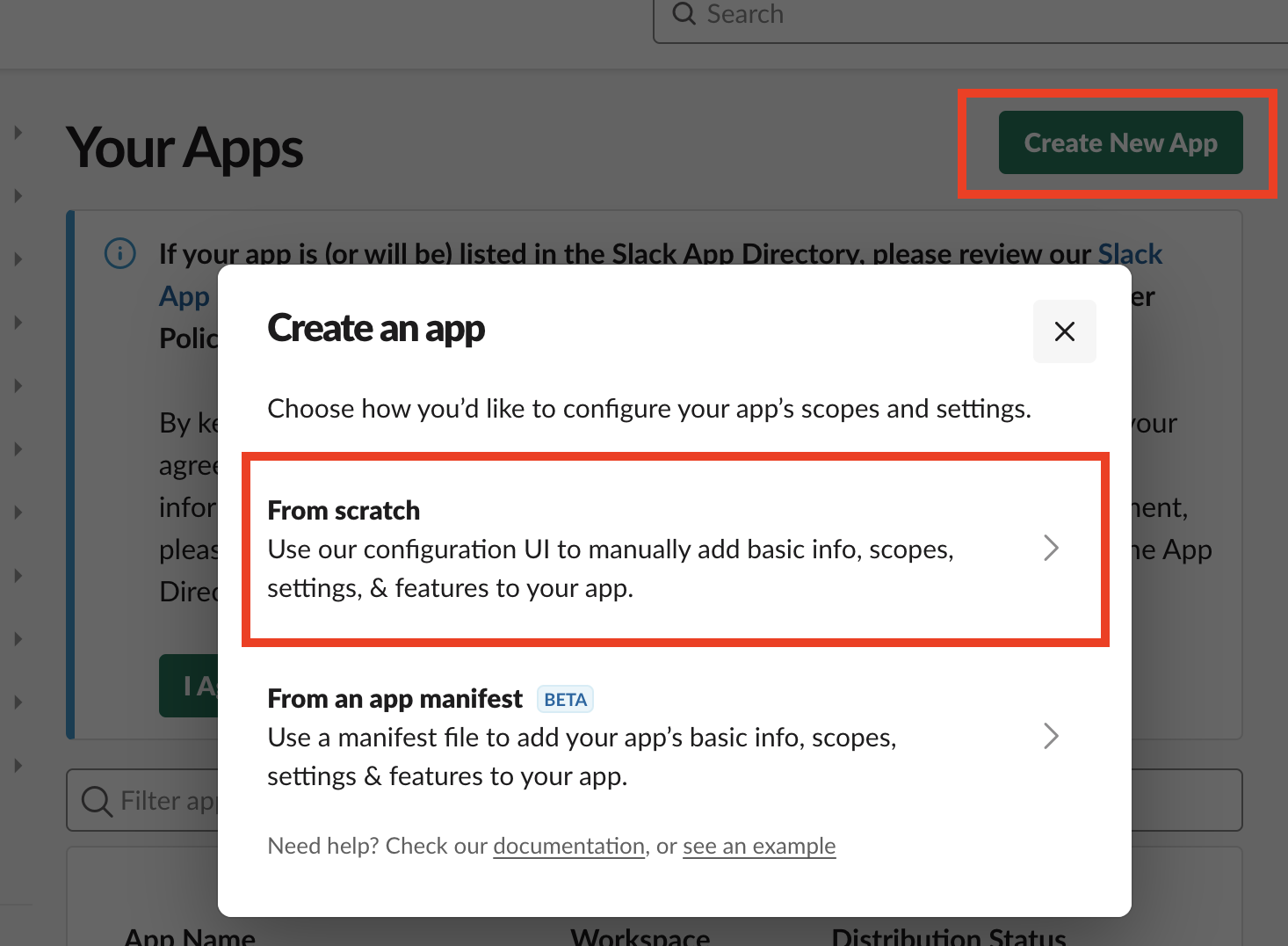 - [Create New App] 을 클릭하고, [From scratch] 를 클릭합니다.
