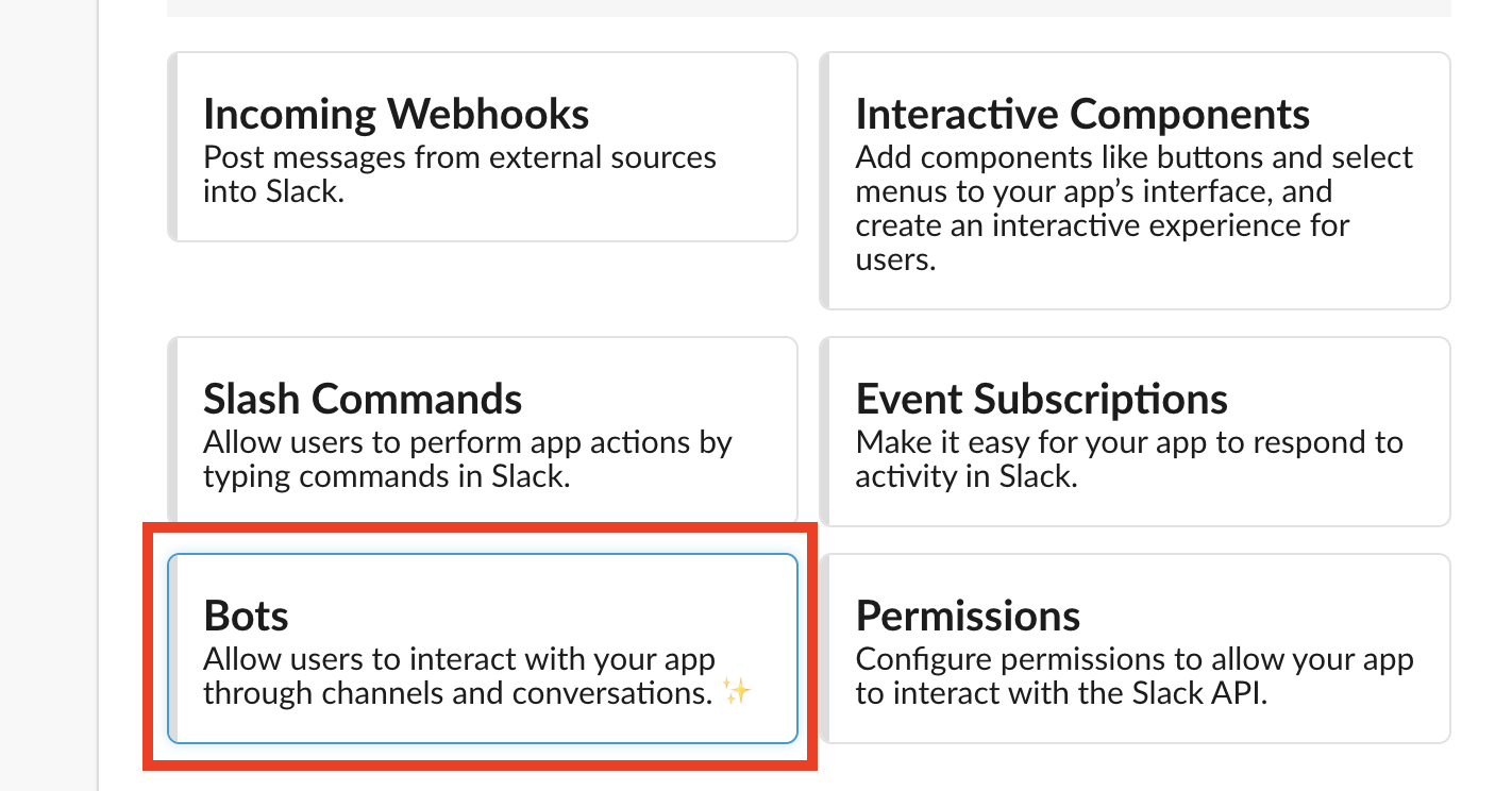 - 생성이 되었다면, 아래 그림처럼 [Bots] 을 선택합니다.