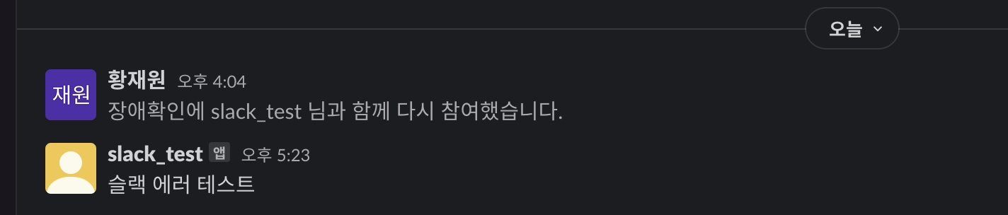 slackService.sendSlackMessage("슬랙 에러 테스트", "error");