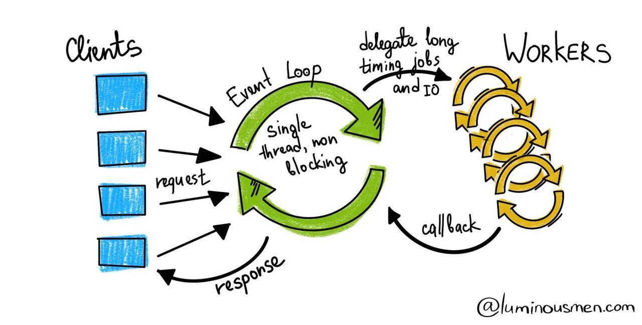 - Event Loop 는 각 Job 을 제공자(Wokres)에게 요청한 후, 응답을 기다리지 않고 다른 Job 을 처리한다.