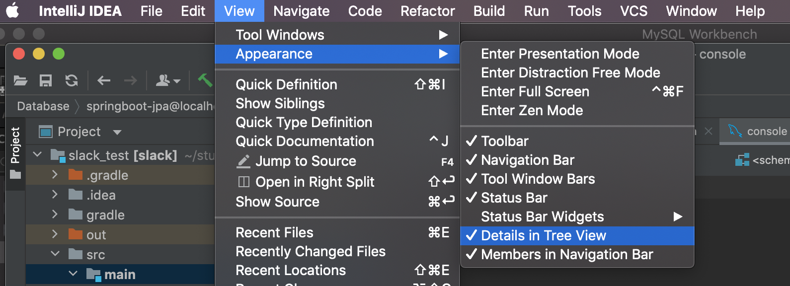 - 메뉴 [view] -> [appearance] -> [Details in tree view]
