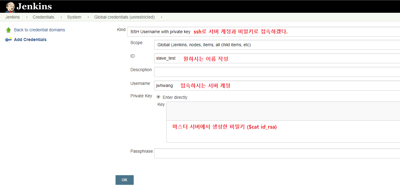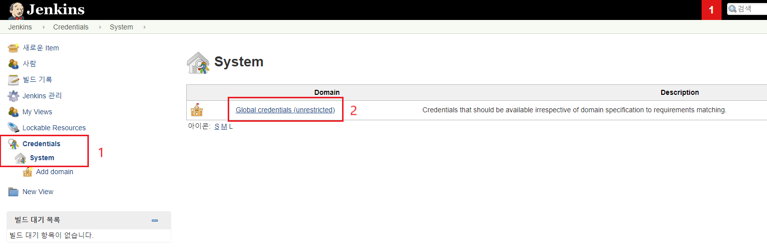 - jenkins 메인 -> Credentials -> System -> Global credentials (unrestricted)
