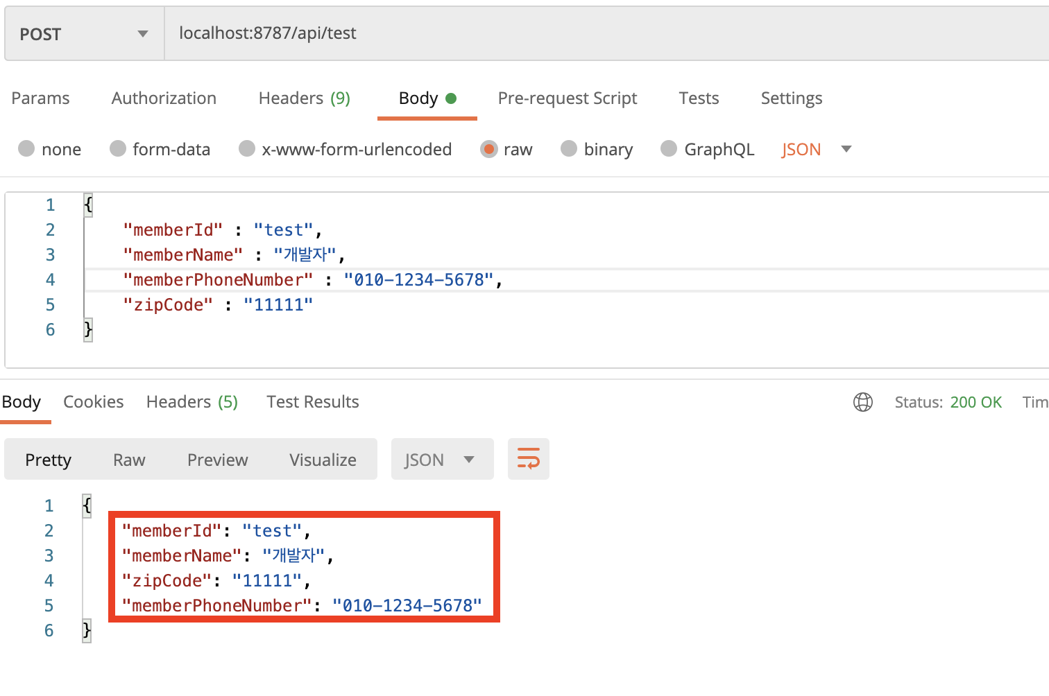 - 위 사진에서와 같이 이번에는 memberPhoneNumber 까지 정상적으로 파싱 되어 전달된 것을 확인할 수 있습니다.
