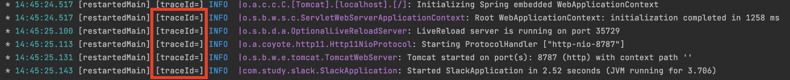 log.info("Start Service [TraceId] -> {}", MDC.get("traceId"));