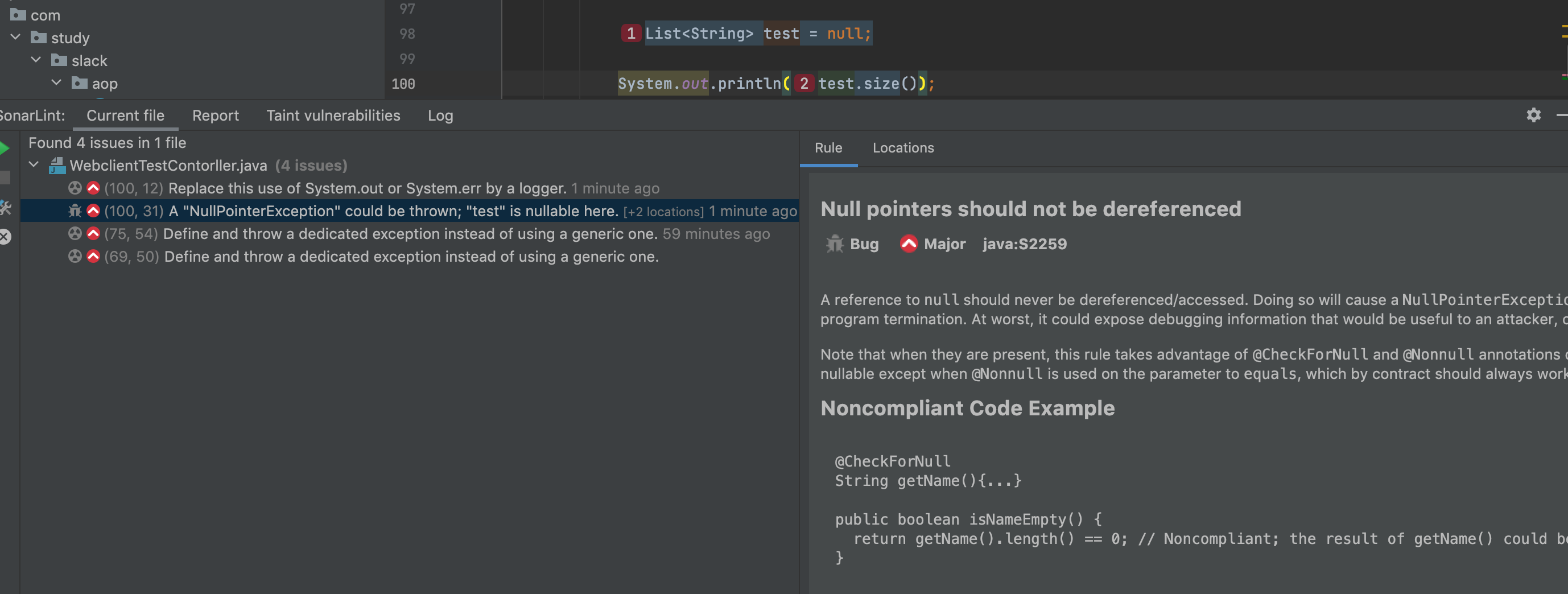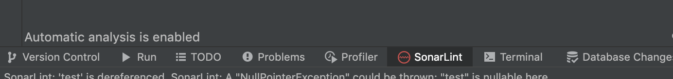 - 인텔리제이 하단의 SonarLint 탭 추가된 것 확인