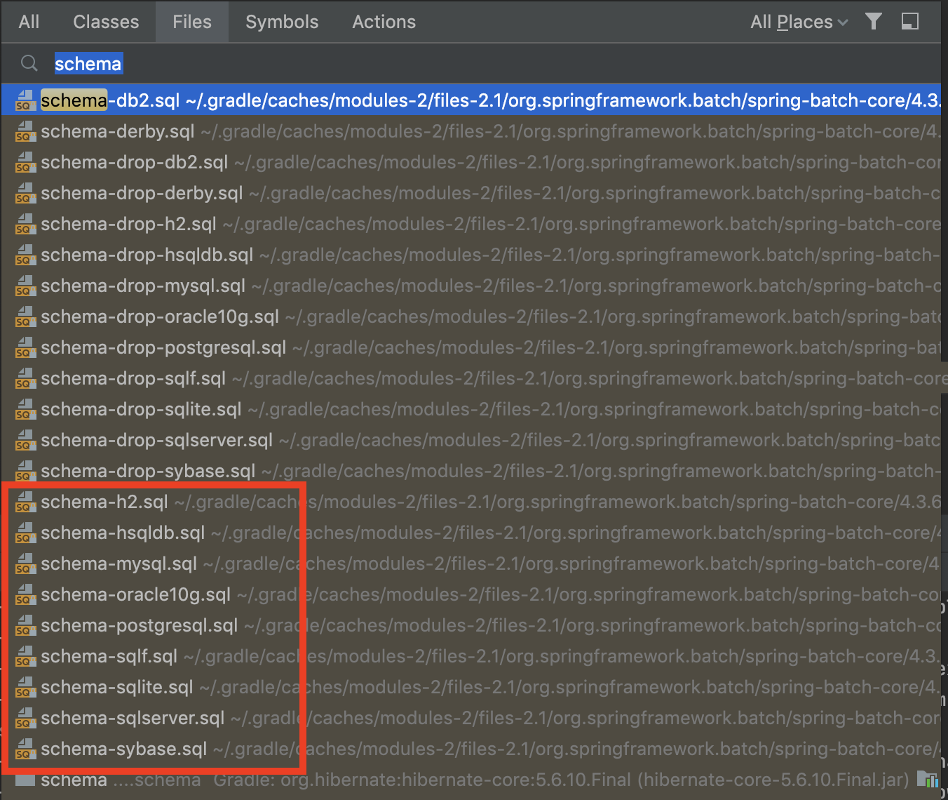본인의 IDE에서 파일 검색으로 "schema-"를 해보시면 메타 테이블들의 스키마가 DBMS에 맞춰 각각 존재하는것을 볼 수 있습니다.