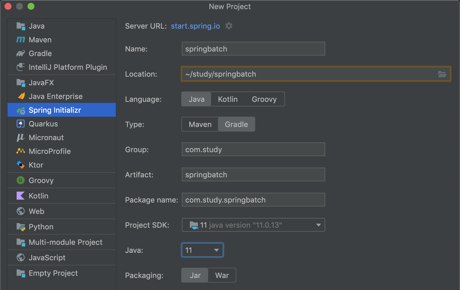 - 인텔리제이를 통해서 프로젝트를 생성합니다.