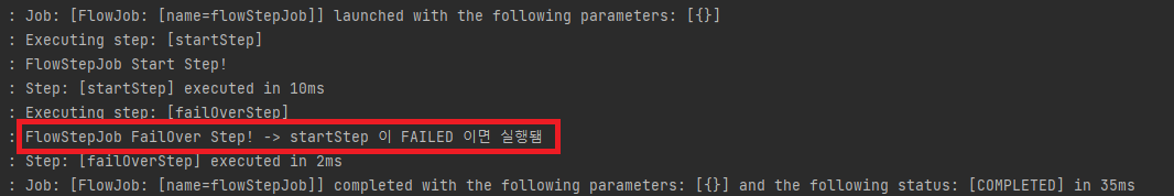 log.info("FlowStepJob FailOver Step! -> startStep 이 FAILED 이면 실행됌");