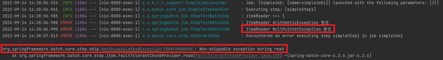 log.error("ItemReader NullPointerException 발생");