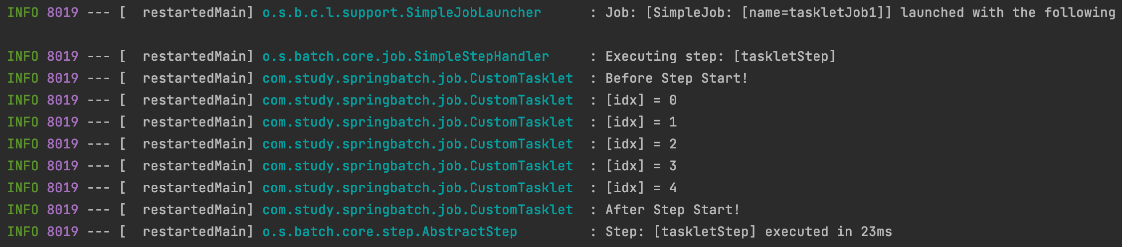 - Tasklet 은 Step 안에서 단일로 수행도리 커스텀한 기능들을 선언할 때 사용