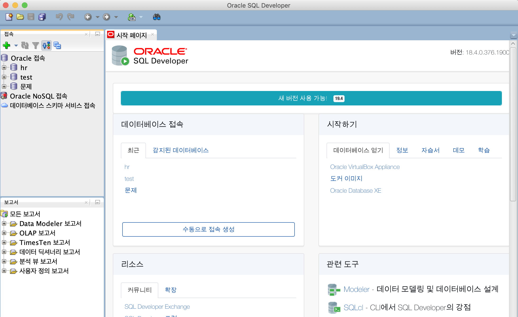 - 좌측 상단의 (초록색) + 를 눌러 설치한 Oracle11g를 연결합니다.