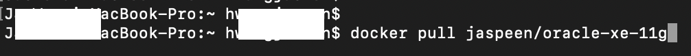- 터미널에서 $docker pull jaspeen/oracle-xe-11g 를 입력하면 다운로드 시작