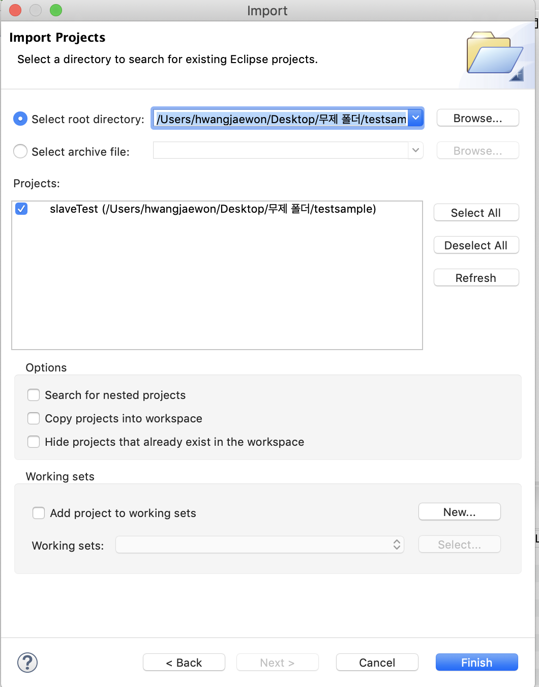 - [Select root Directory] -> [Browse] -> Git Clone을 받은 위치 -> [Finish]