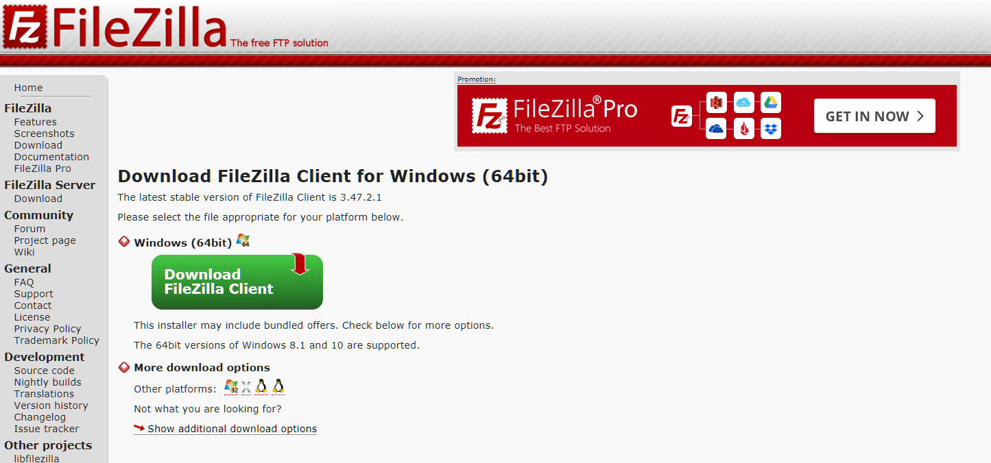 - 화면 중간에 [Download FileZilla Client] 클릭