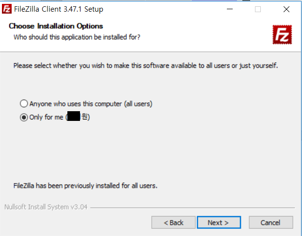 - 설치가 완료 되었다면 FileZilla Client 실행