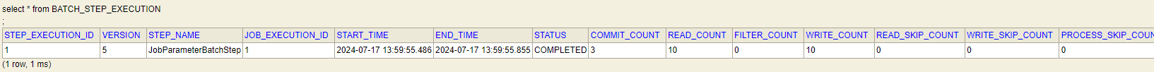 - STEP_EXECUTION 정보인 읽은 수, 커밋 수, 스킵 수 등 다양한 정보를 추가로 보관. -> 스프링 배치 무한 수행 오류를 찾게 된 테이블