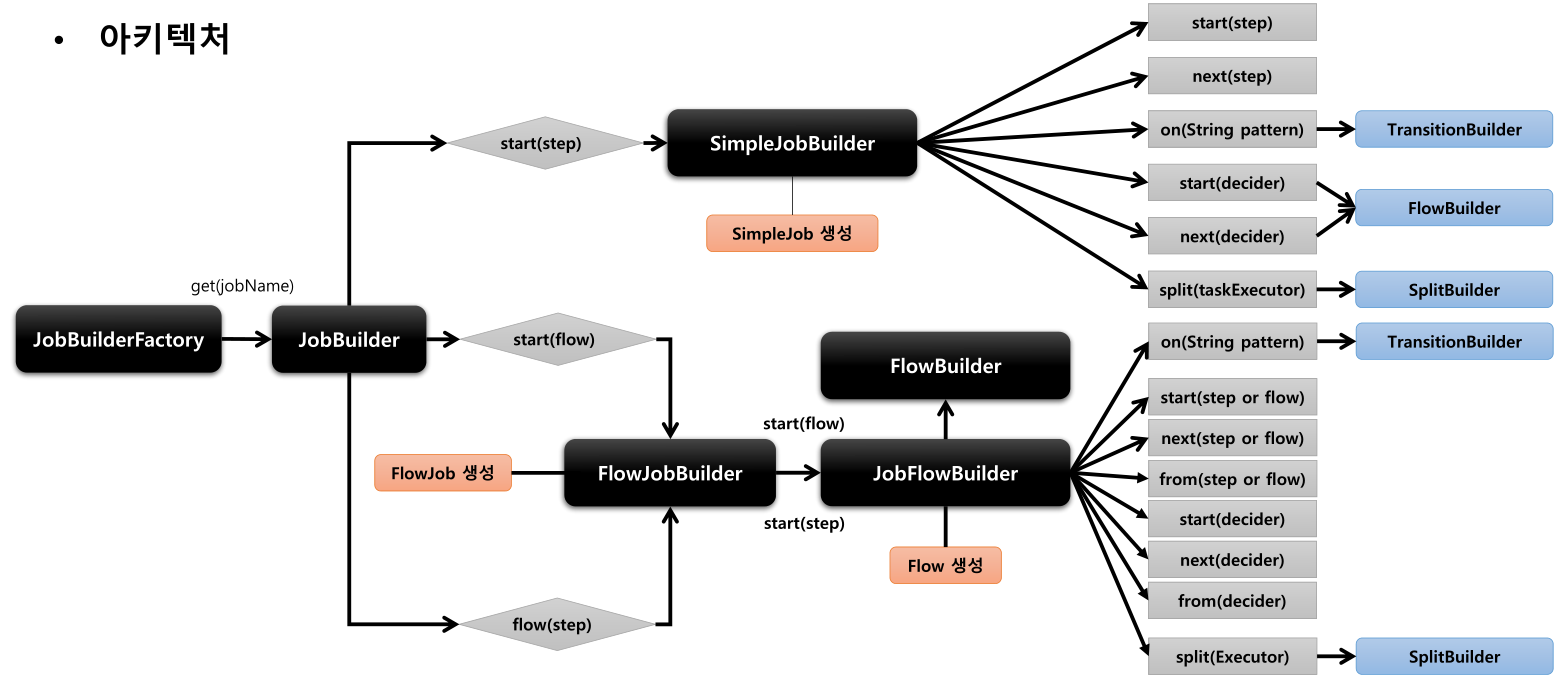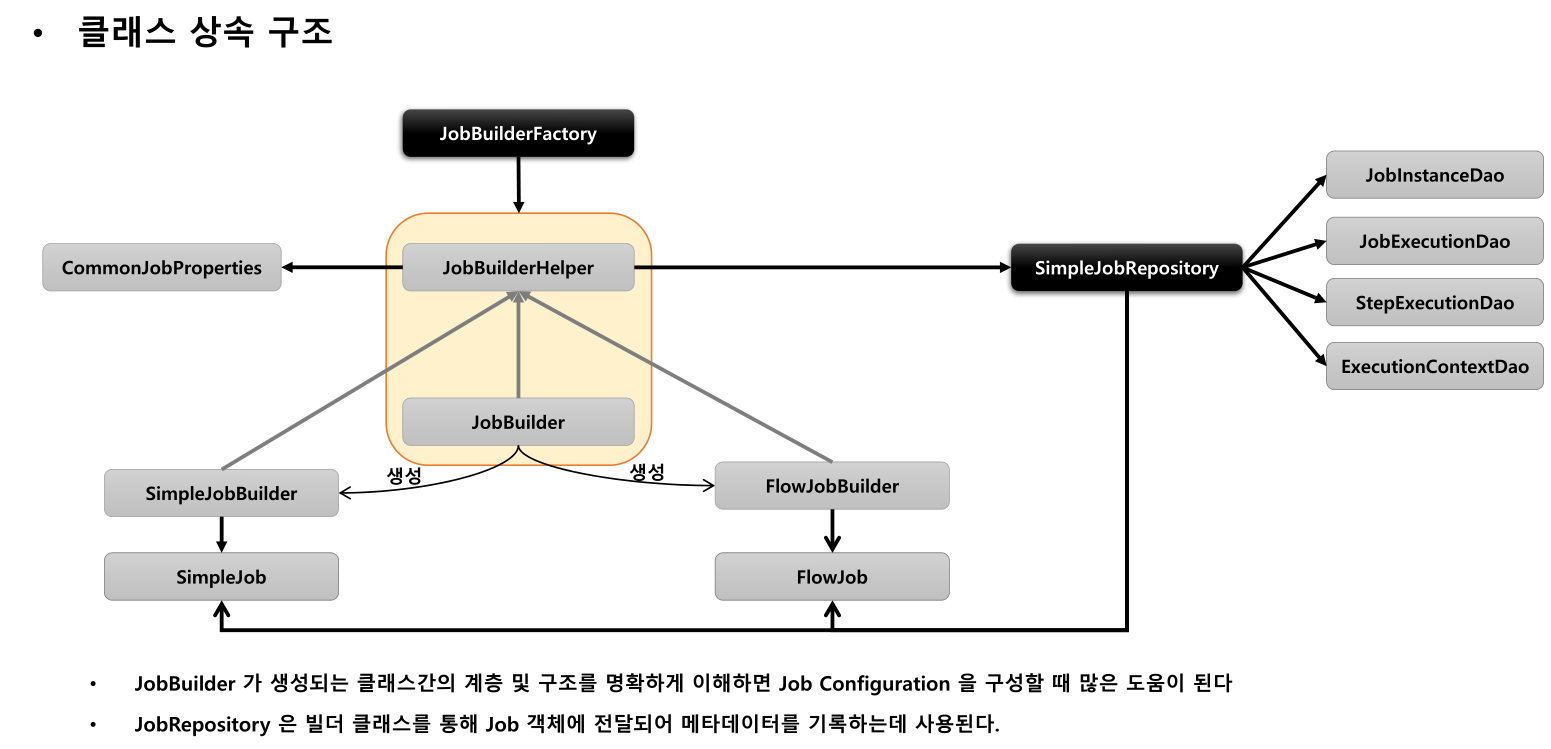 - Spring Batch 는 Job 과 Step 을 쉽게 생성할 수 있도록 Builder 클래스를 제공