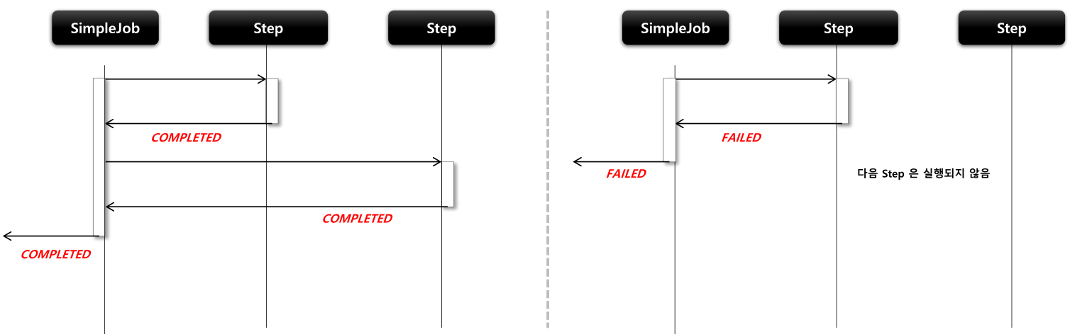 - 모든 Step 이 완료되어야만 Job 이 성공적으로 완료(만약 중간 Step 에서 오류/실패가 된다면 해당 Job 은 실패로 완료)