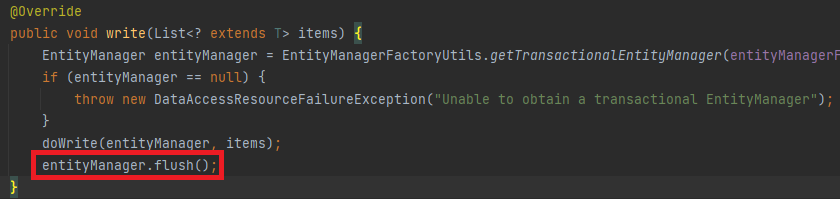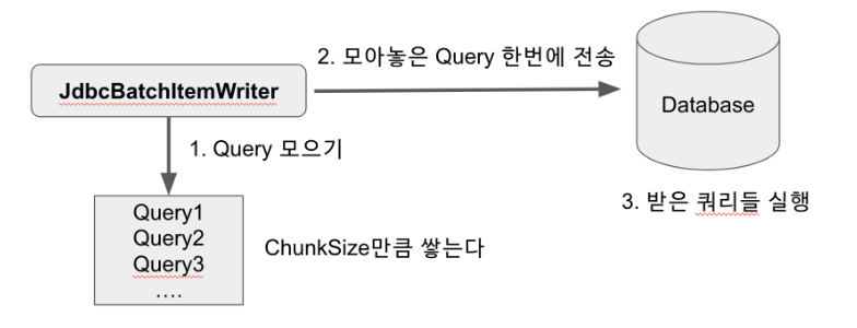 itemWriter.write(items); // ChunkSize 만큼의 데이터를 한번에 처리