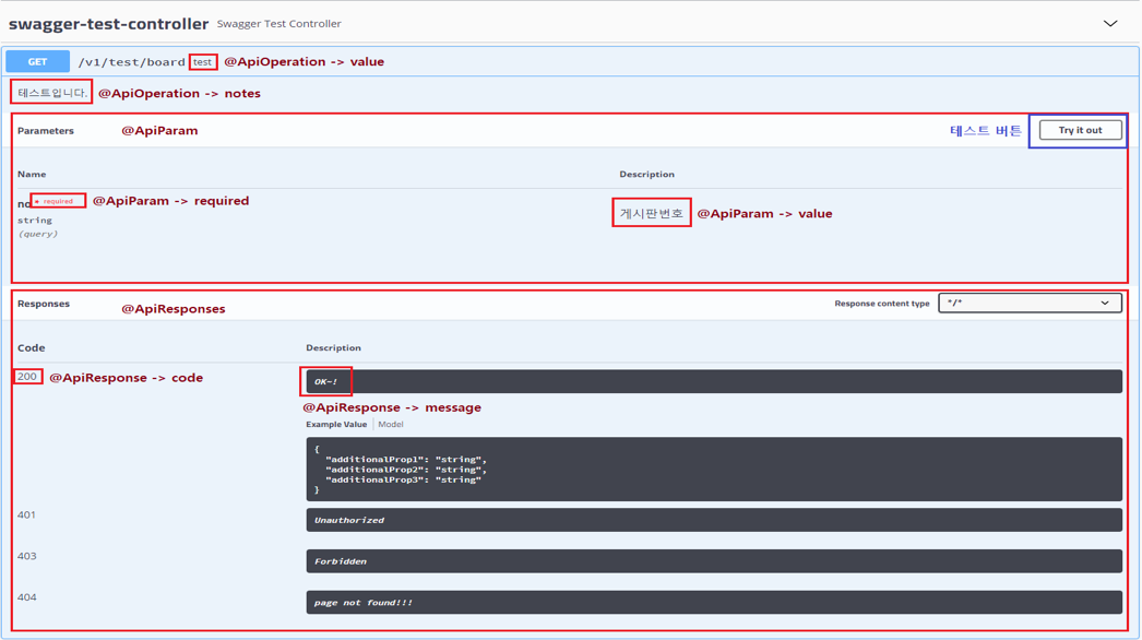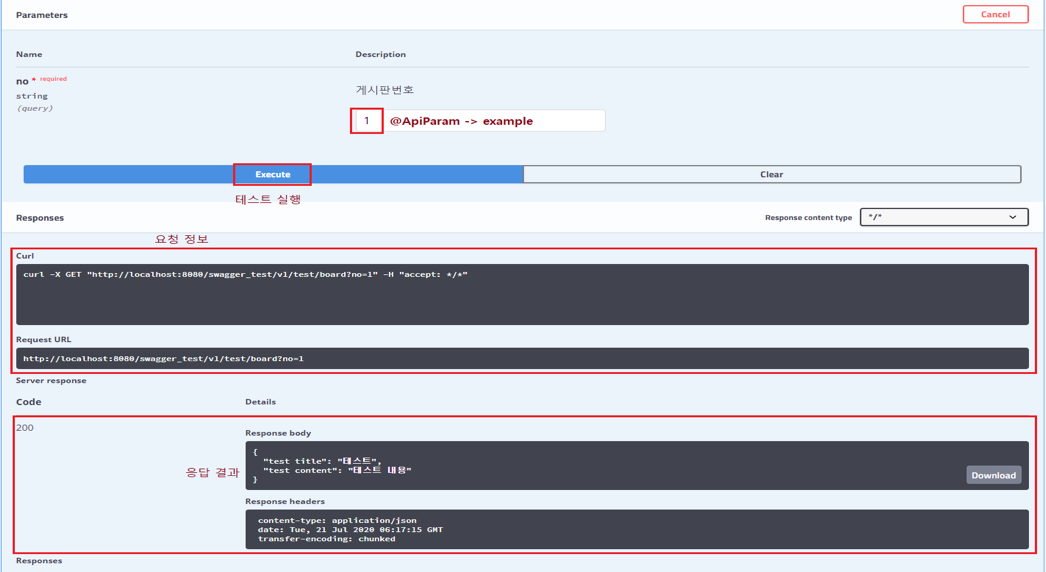 public Map<String, String> selectBoard(@ApiParam(value = "게시판번호", required = true, example = "1") @RequestParam String no) {