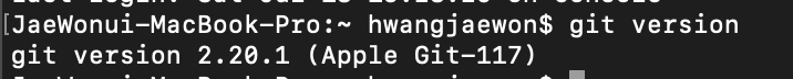 - git 설치 확인을 위해 터미널에서 git version 을 입력하여 확인합니다.