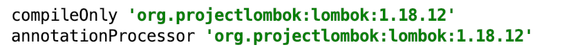 - build.gradle에 annotationProcessor 'org.projectlombok:lombok:1.18.12' 추가 후 재빌드 진행