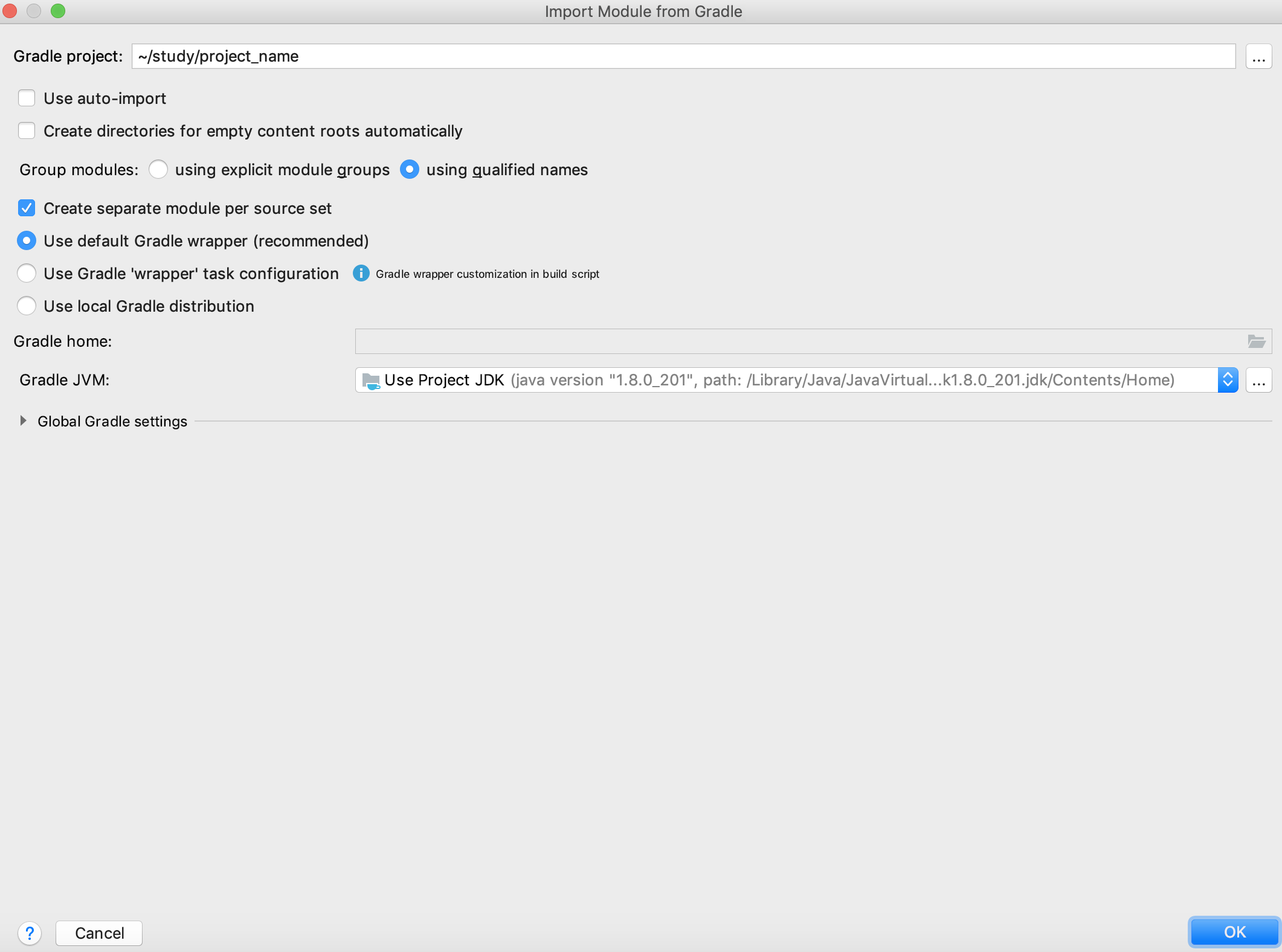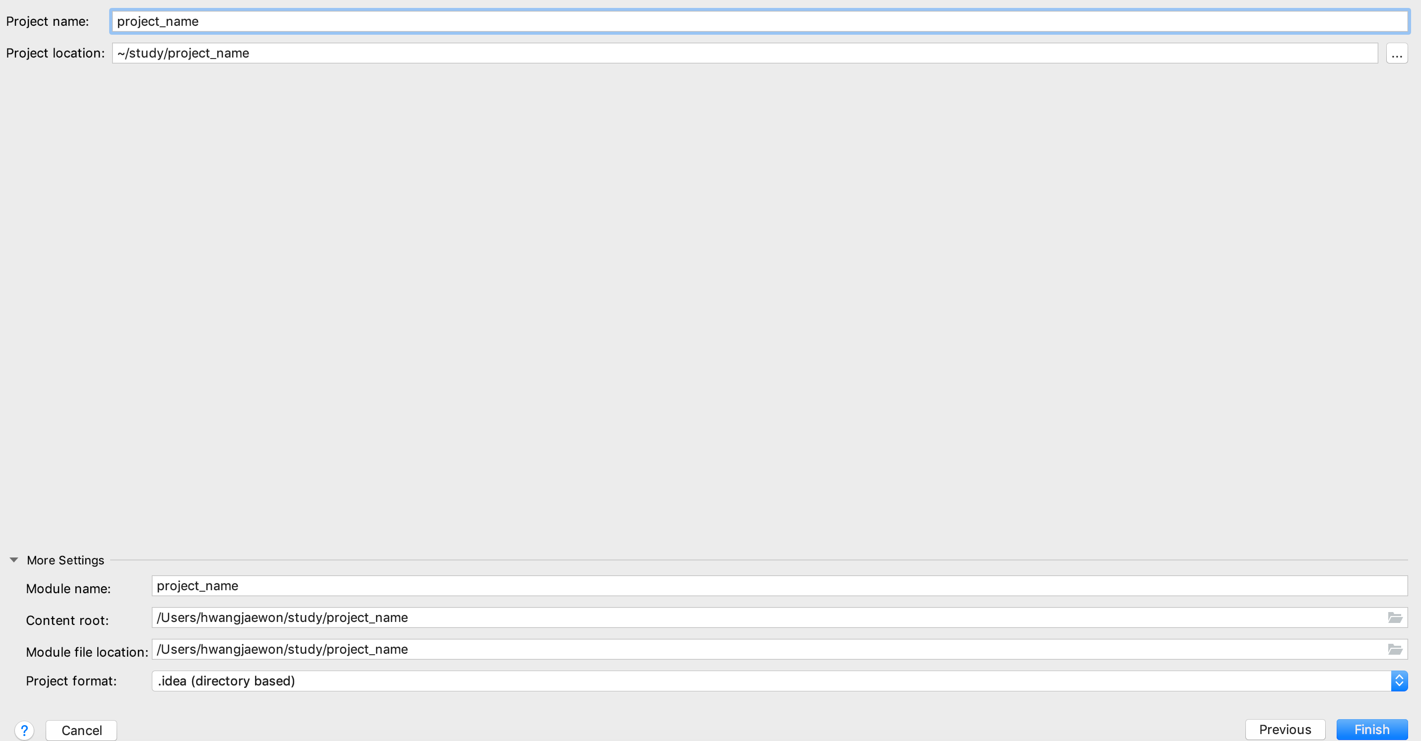 - Project Name에 프로젝트 이름(폴더명)을 작성합니다.