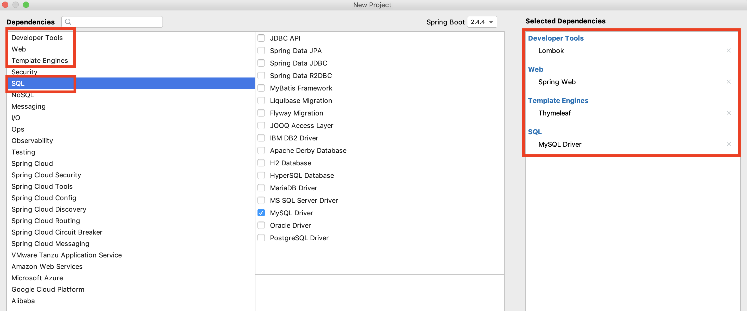 (해당 글에서는 Lombok, Spring Web, MySQL, Thymeleaf 를 선택하였습니다.)