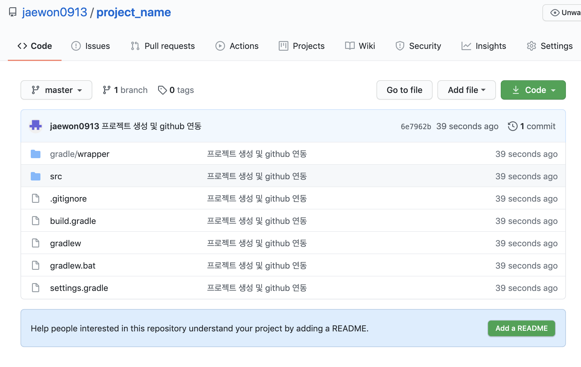 - Repostiory가 생성되었다면 로컬에 있는 프로젝트와 연동합니다.