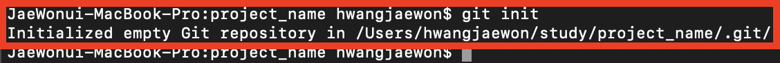 - 프로젝트 폴더에 위치하면 git init 을 입력하여 Git 과 연동을 준비합니다.
