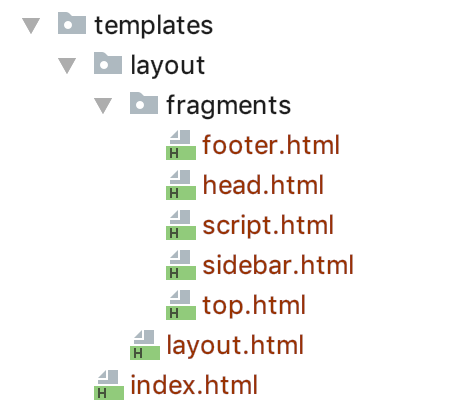 - layout 디렉토리 안에 layout.html은 fragments의 파일들을 하나의 layout의 파일로 사용되도록 하겠습니다.