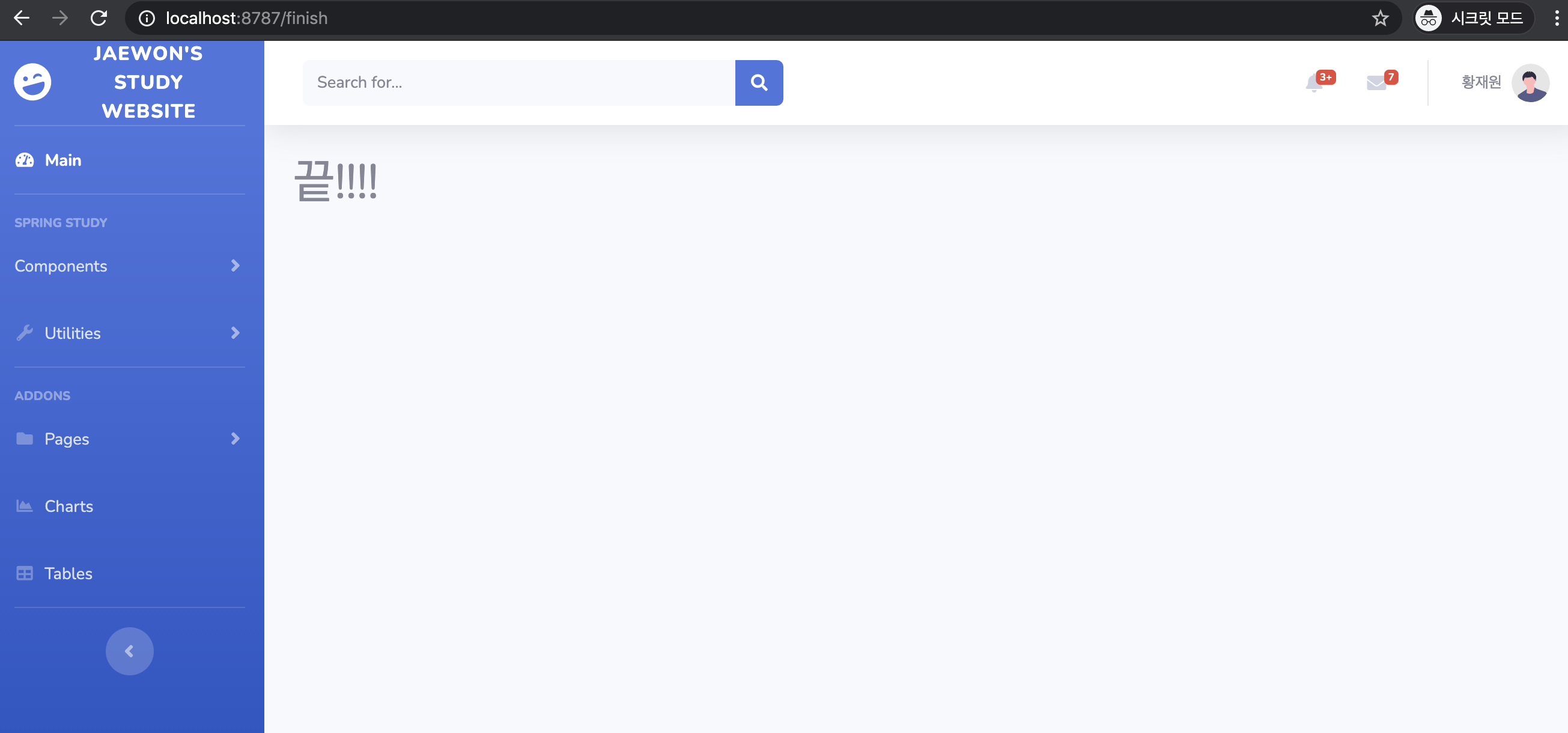 이전 글에서 bootstrap 템플릿을 사용해서 페이지를 구성하였다.