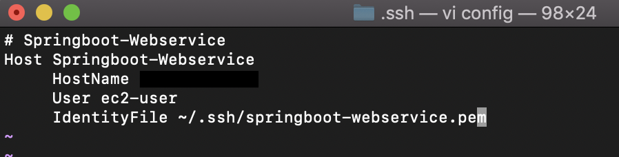 - pem키 파일이 있는 ~/.ssh 디렉토리에 config 파일을 생성합니다.
