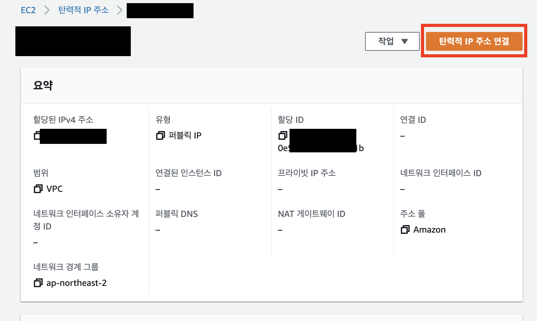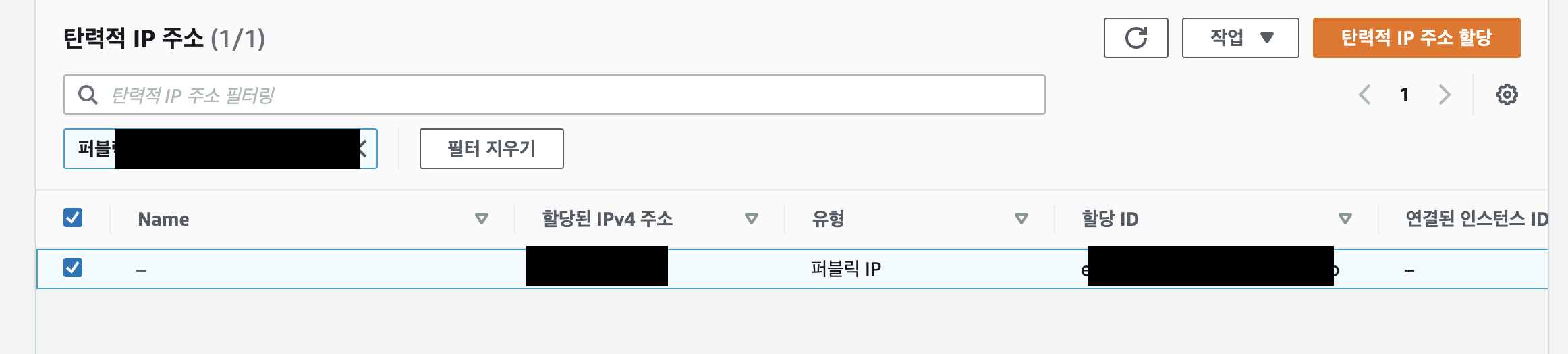 - 탄력적 IP가 생성되었습니다.