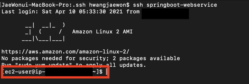 - ssh 등록한host 값 (ex: ssh springboot-webservice)