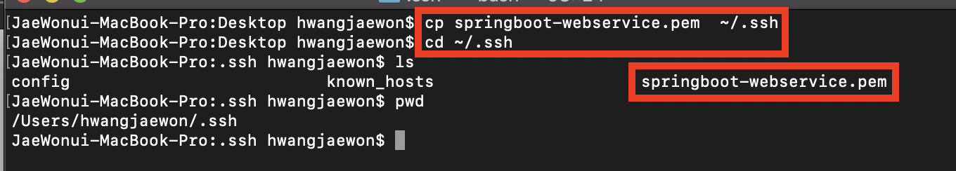- 인스턴스 생성 시에 다운로드 받은 pem 파일을 ~/.ssh/ 로 복사합니다.