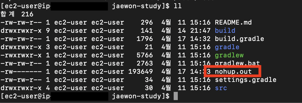 - 찾은 jar 파일을 nohup 을 통해 실행시킵니다.