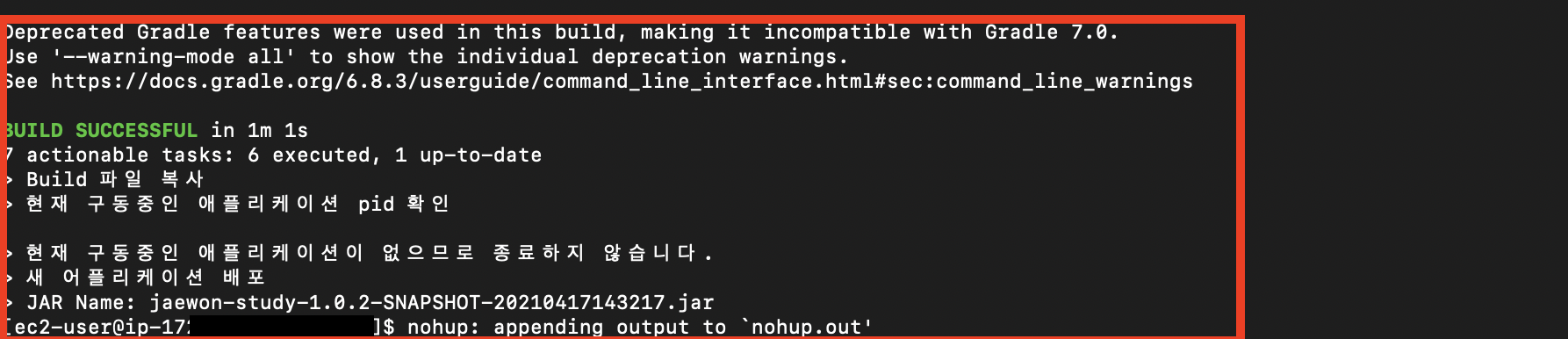 - nohup java -jar $REPOSITORY/$JAR_NAME &
