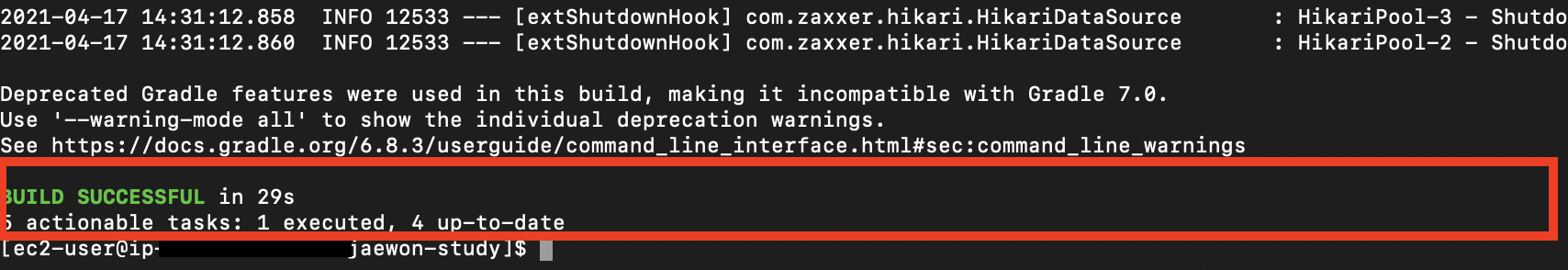 EC2 접속 : Mac에선 터미널을 키고 ssh config에서 지정한 이름 (ex: ssh springboot-webservice)