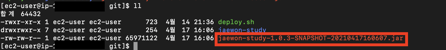 - JAR_NAME=$(ls $REPOSITORY/ |grep 'jaewon-study' | tail -n 1)