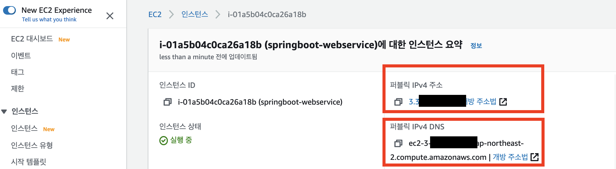 - EC2의 퍼블릭 DNS 를 확인하여, 해당 주소로 접속합니다.