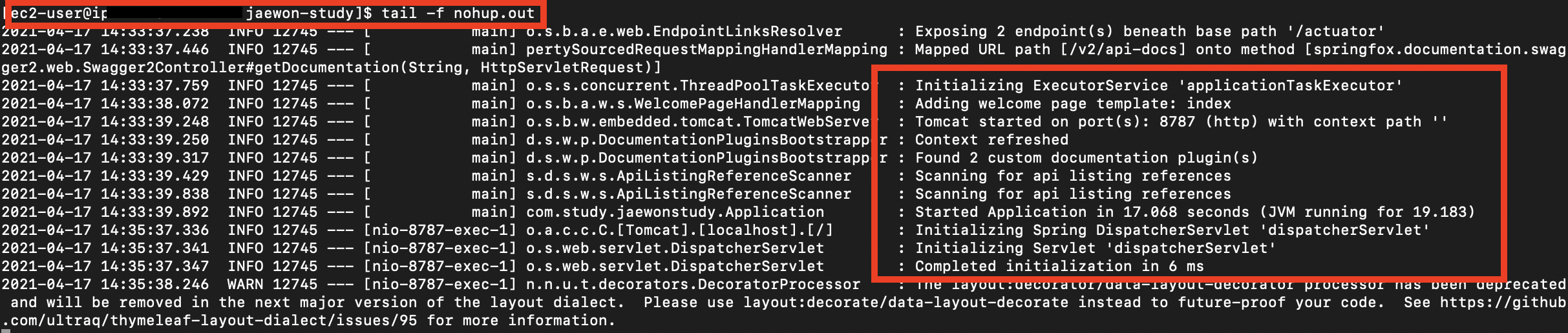 tail -f nohup.out <--- 실시간 로그 확인