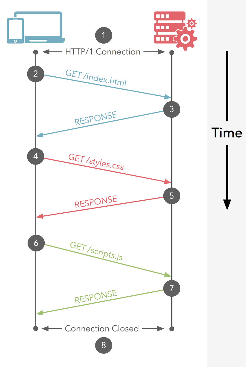 ⑧ 모든 요청이 종료되면 HTTP/1 연결이 종료됩니다.