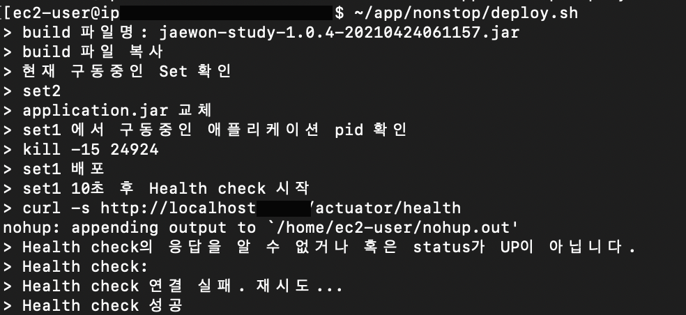 echo "> Health check 성공"