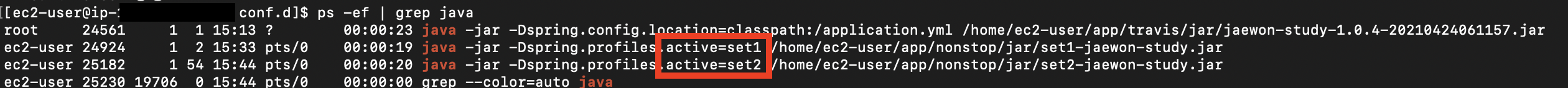 - 위 그림과 같이 프로젝트가 set1, set2가 구동중이며, Nginx는 현재 set1을 바라보고 있습니다.