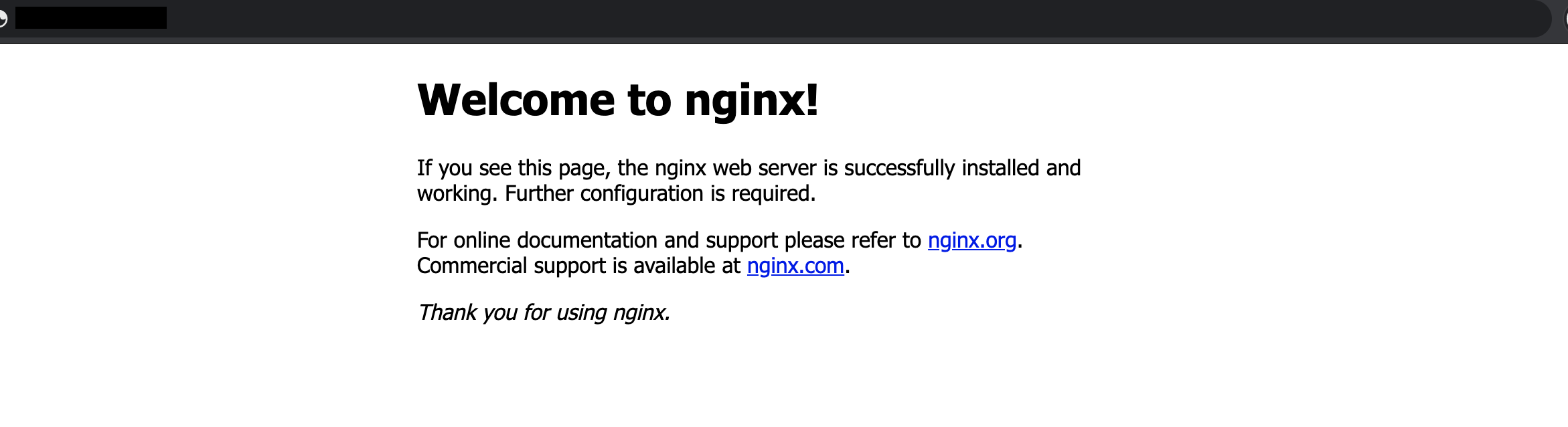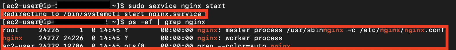 - 정상적으로 Nginx가 실행되었는지 확인합니다.